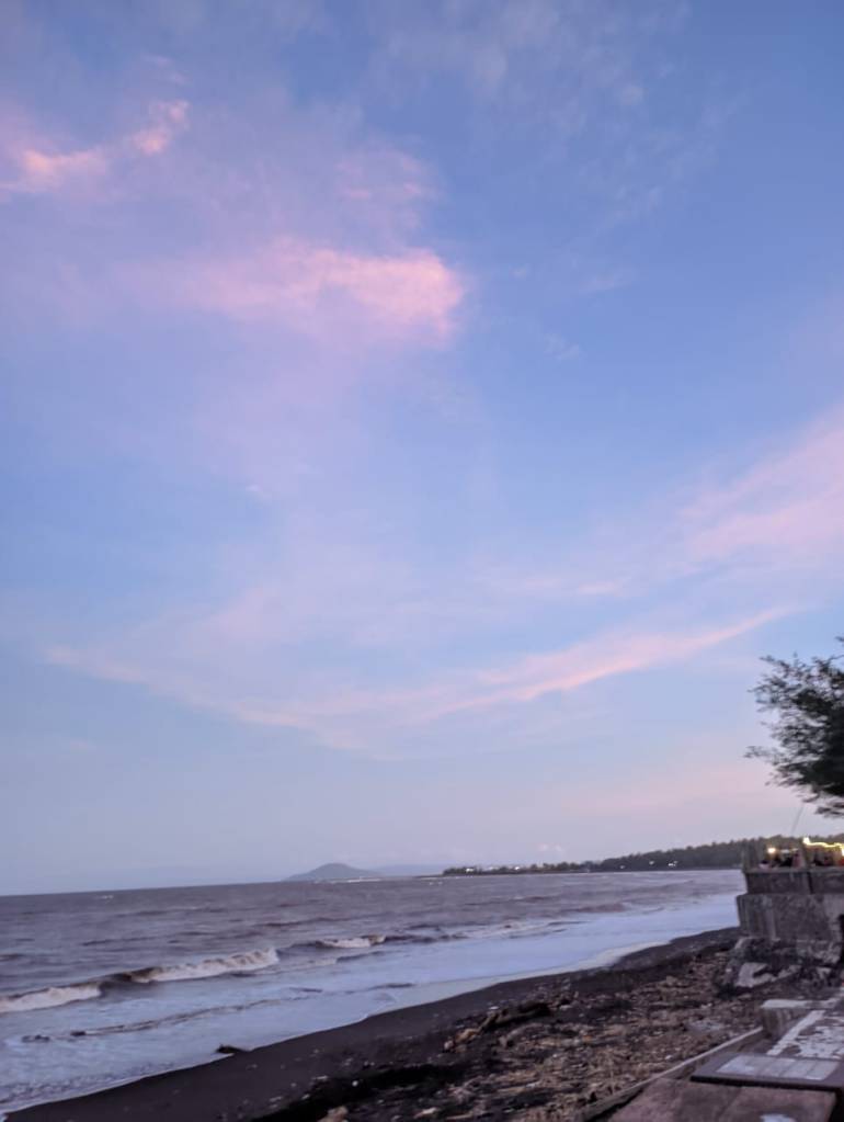 Kita sambil menikmati makanan dan menikmati sejuknya Angin sepoy-sepoy , melihati ombak pantai yang bergelombang